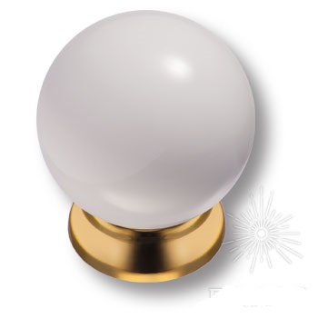 Ручка кнопка 5101-102, материал Замак Пластик, цвет Белый, отделка Золото Пластик, d=34 мм